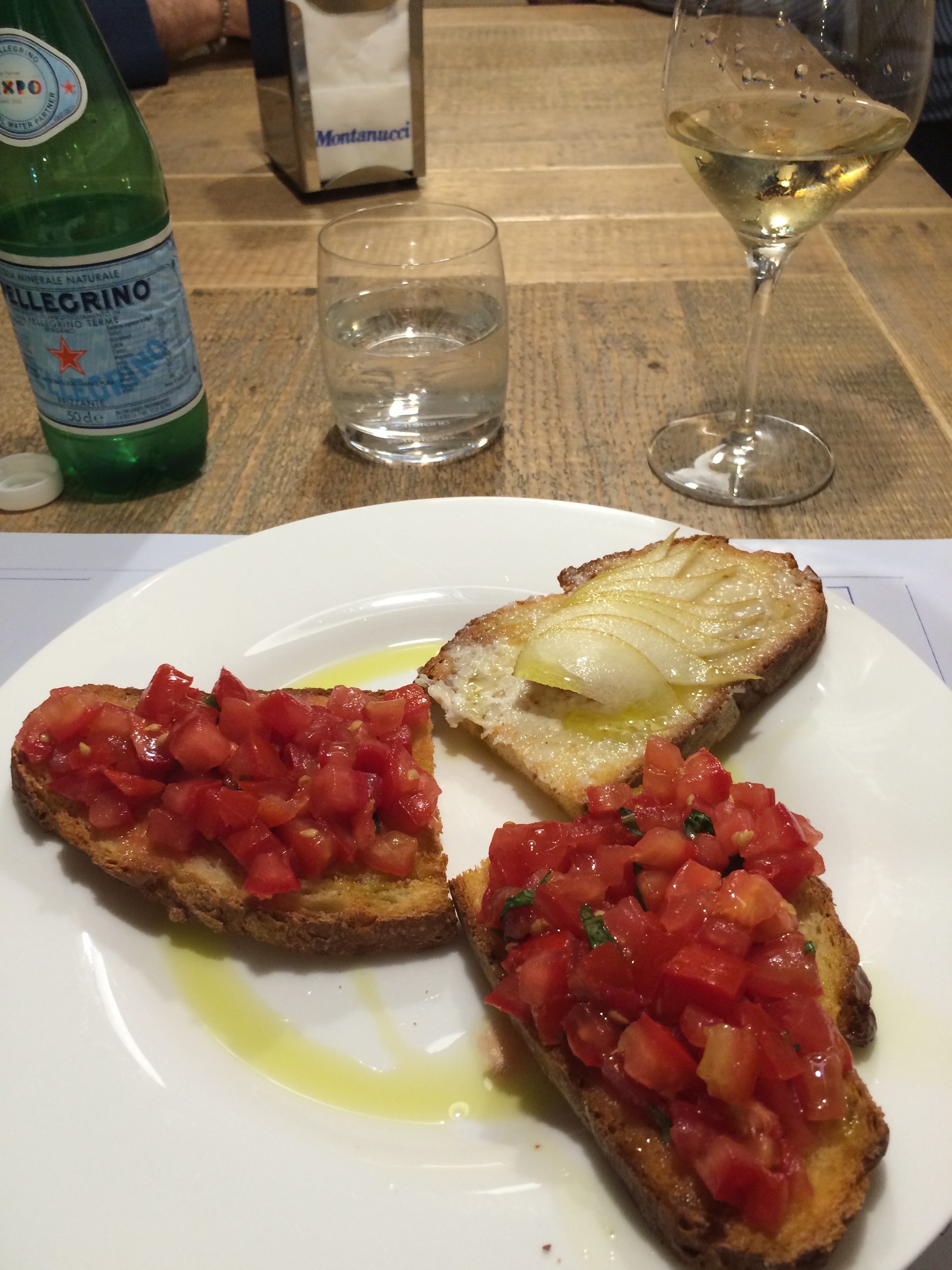 Shortly after I returned from my hour and a half walk, which by the way was heaven (everything about this place was and is heaven. That’s the word of the trip in case you haven’t noticed), it started to get slightly suspicious of rain so I bolted home, showered and went out to dinner to the same place as lunch. Sitting alone in the corner of the restaurant, writing, reading and of course drinking my Orvieto Classico, I couldn’t help but feel completely at ease. I felt even BETTER when this came…