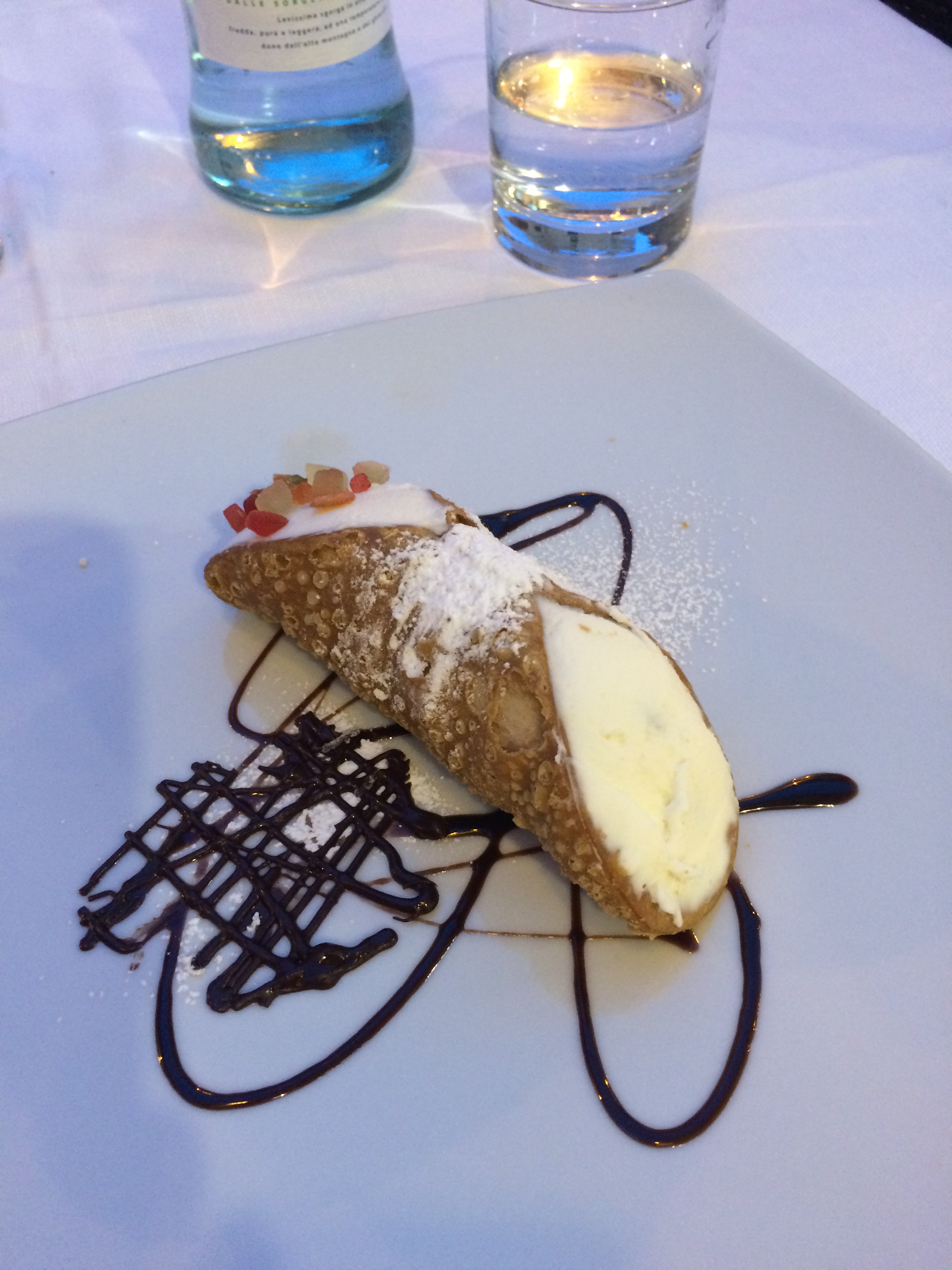 Tomorrow I travel to Florence, but not before having a delectable dinner of seafood risotto and CANNOLI!!!!